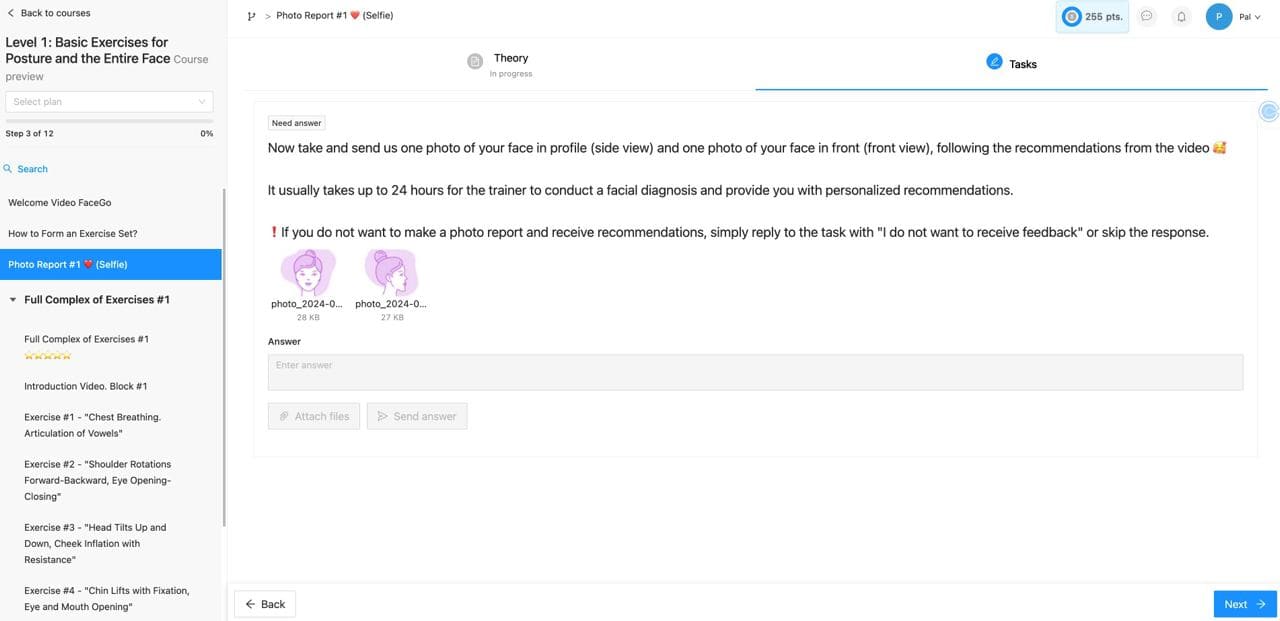 Eğitmen, kişiselleştirilmiş bir yüz teşhisi ve öneriler sunacaktır.