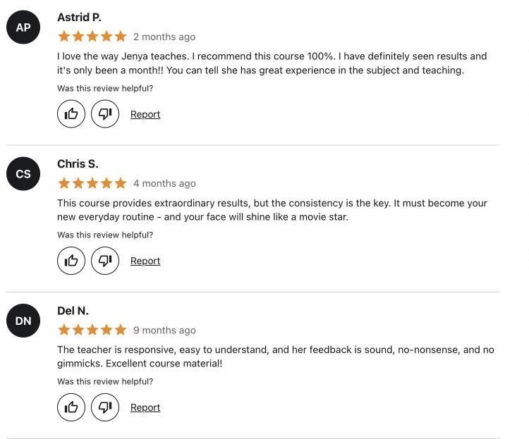 Sertifika: Tamamladıktan sonra bir sertifika alın ve Jenya Baglyk tarafından verilen sertifika programımızda indirimle yüz yogası eğitmeni olarak yeni bir kariyer yapma fırsatı yakalayın.